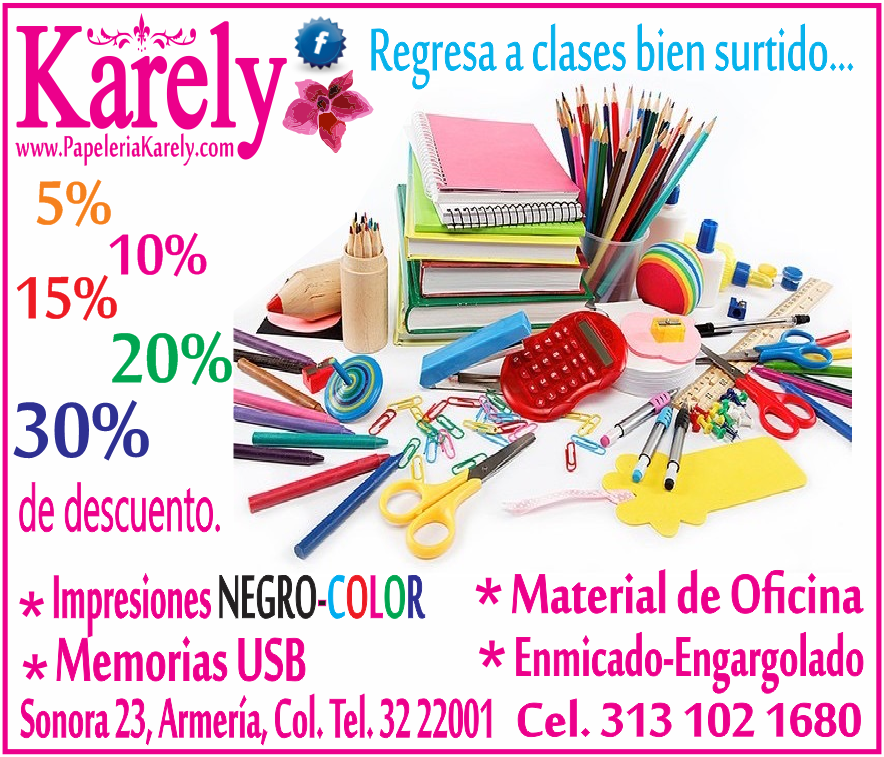 Regresa a clases bien surtido... Tel 313 32 2 2001 - Papepería Karely